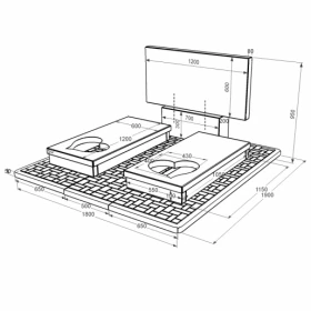 - Габариты: В/Ш/Д 900(50) х 1200(1800) х 1400(1950) мм.