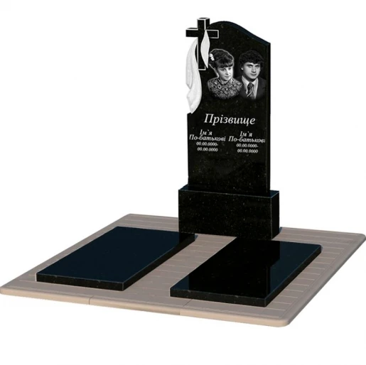 - Устройство: с постаментом , со стелой , с надгробной плитой , полное полирование сторон , полированные фаски , с противоусадочной плитой , 2 портрета, ФИО с одной фамилией и даты