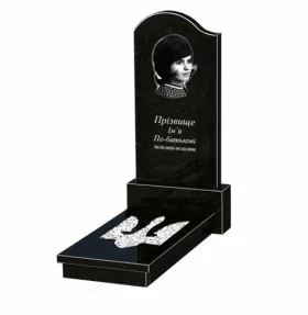 - Памятник надгробие из гранита девушкам одинарный из черного гранита Коростышев с волной и Трезубом вырезанным к8-kor-npf-120-60-08-011.