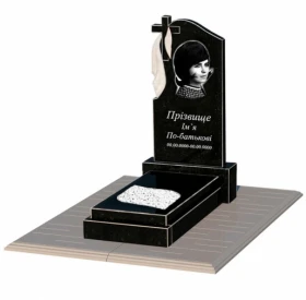 - Гранитный памятник дочке одинарный из черного гранита Коростышев с листом резная работа к13-kor-npf-80-40-05-142-pbd1.