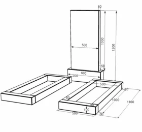 - Габариты: В/Ш/Д 1200 х 600 х 1310 мм.