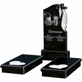 Гранитный памятник на могилу на двоих из черного гранита Коростышев с сердцем резная работа к20-kor-npf-100-50-08-142-r
