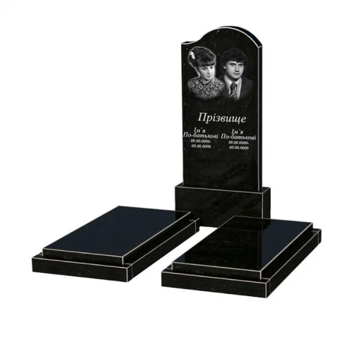 - Устройство: с постаментом , со стелой , с гробницей , полное полирование сторон , неполированные фаски , без площадки , 2 портрета, ФИО с одной фамилией и даты