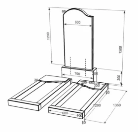 - Устройство: с постаментом , со стелой , с цветником , полное полирование сторон , полированные фаски , с плитой на цветнике , без площадки , 2 портрета, ФИО с одной фамилией и даты