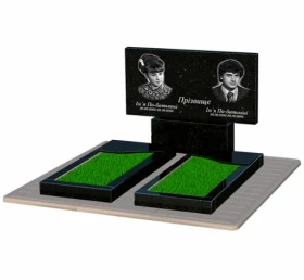 - Устройство: с постаментом , со стелой , с цветником , полное полирование сторон , полированные фаски , с плитой на цветнике , с противоусадочной плитой , 2 портрета, ФИО с одной фамилией и даты