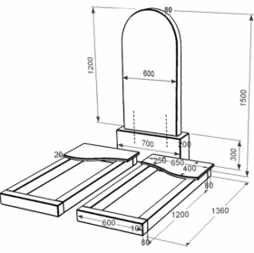 - Устройство: с постаментом , со стелой , с цветником , полное полирование сторон , неполированные фаски , без площадки , 2 портрета, ФИО с одной фамилией и даты