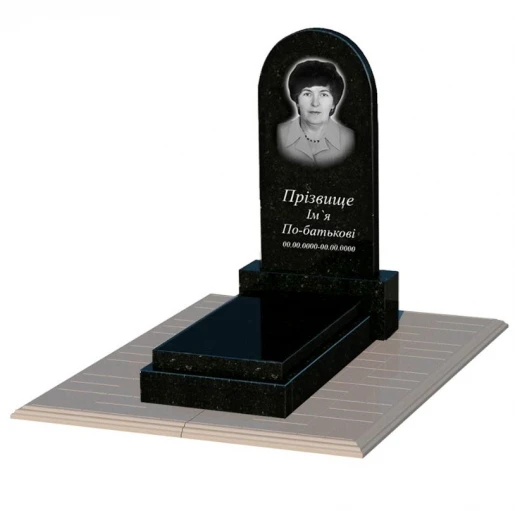 - Гранитный памятник маленького размера одинарный из черного гранита Коростышев с полукруглой стелой к12-kor-pf-80-40-05-006-pbd1.