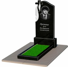 - Памятник из гранита мужской одинарный из черного гранита Коростышев с крестом и плащаницей резной к1-kor-npf-120-60-08-142-pbd3.