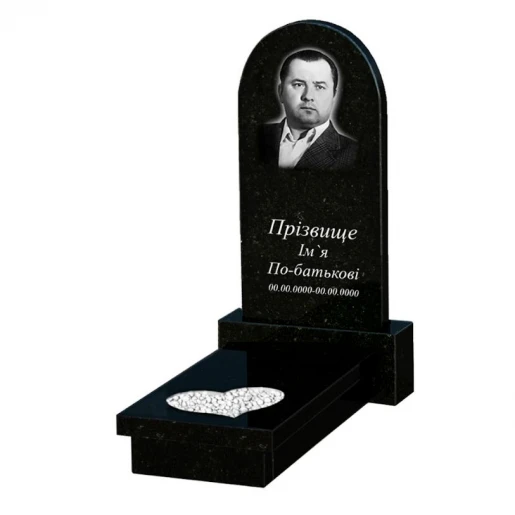 - Памятник из гранита полукруглый одинарный из черного гранита Коростышев с сердцем резная работа к11-kor-pf-80-40-05-006.