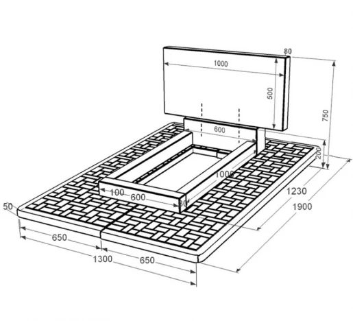 - Габариты: В/Ш/Д 700(50) х 1000(1300) х 1230(1900) мм.