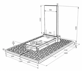 - Габариты: В/Ш/Д 1200(50) х 600(1300) х 1150(1900) мм.