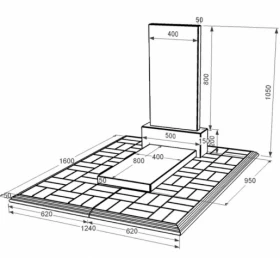 - Габариты: В/Ш/Д 1000(50) х 500(1240) х 950(1600) мм.