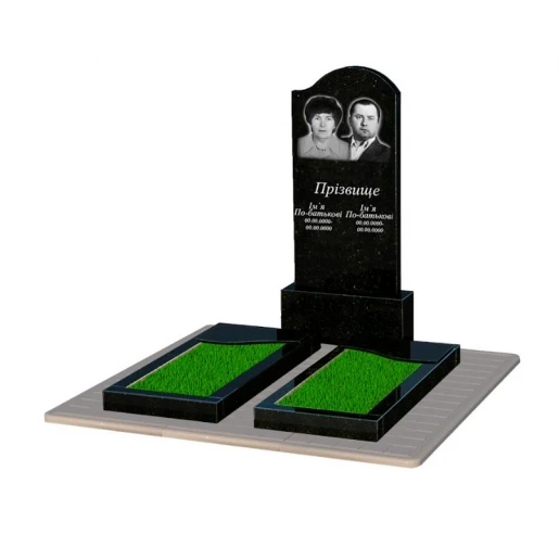 - Устройство: с постаментом , со стелой , с цветником , полное полирование сторон , полированные фаски , с плитой на цветнике , с противоусадочной плитой , 2 портрета, ФИО с одной фамилией и даты