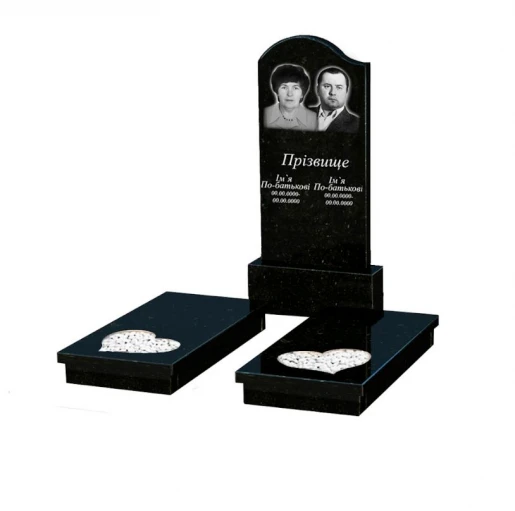 Гранитный могильный камень с гробницей двойной из черного гранита Коростышев с сердцем резная работа к20-kor-pf-120-60-08-011-l