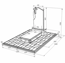 - Габариты: В/Ш/Д 1000(50) х 500(1240) х 950(1600) мм.