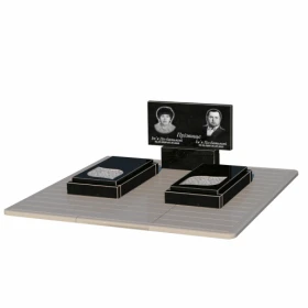 - Устройство: с постаментом , со стелой , с гробницей , полное полирование сторон , неполированные фаски , с противоусадочной плитой , 2 портрета, ФИО с одной фамилией и даты