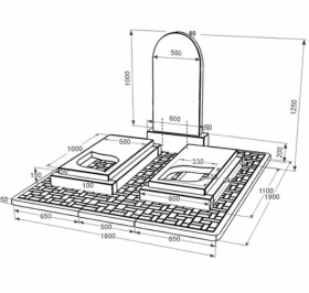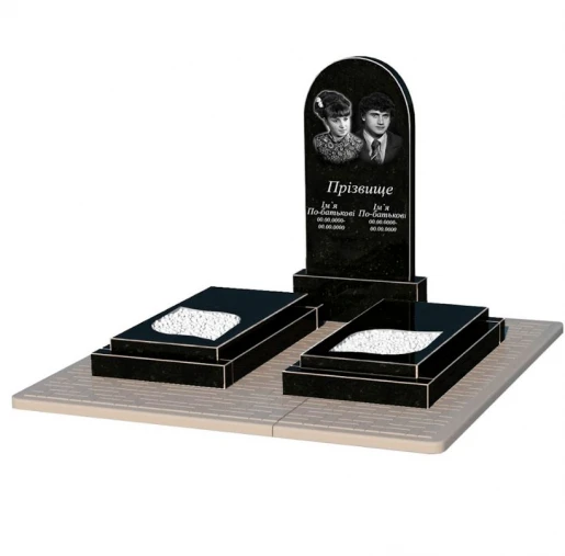 - Устройство: с постаментом , со стелой , с гробницей , полное полирование сторон , неполированные фаски , с противоусадочной плитой , 2 портрета, ФИО с одной фамилией и даты