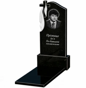 - Памятник из гранита с плащаницей и крестом резной формы одинарный из черного гранита Коростышев к7-kor-npf-120-60-08-142.