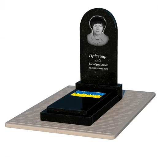 - Гранит надгробие с полным полированием сторон одинарный из черного гранита Коростышев с вырезанным флагом к6-kor-pf-100-50-08-006-pbd2.