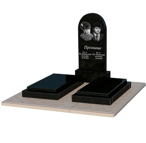 Памятник из гранита с полным полированием сторон двойной из черного гранита Коростышев с полукруглой стелой к21-kor-pf-100-50-08-006-pbd2