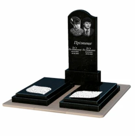 - Устройство: с постаментом , со стелой , с гробницей , полное полирование сторон , полированные фаски , с противоусадочной плитой , 2 портрета, ФИО с одной фамилией и даты