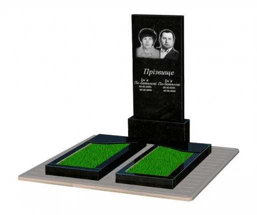 - Устройство: с постаментом , со стелой , с цветником , полное полирование сторон , полированные фаски , с плитой на цветнике , с противоусадочной плитой , 2 портрета, ФИО с одной фамилией и даты