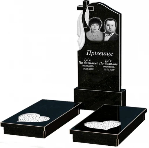 - Гранитный памятник с сердцем резная работа двойной из черного гранита Коростышев к20-kor-npf-120-60-08-142.