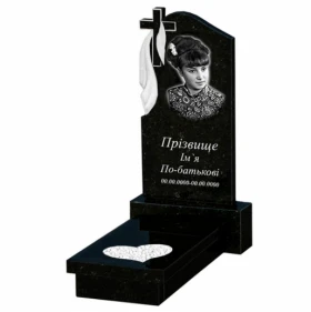 - Гранитный памятник с сердцем резная работа одинарный из черного гранита Коростышев к11-kor-pf-80-40-05-142.