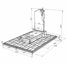 - Габариты: В/Ш/Д 1000(50) х 500(1240) х 950(1600) мм.