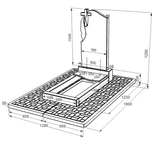 - Устройство: с постаментом , со стелой , с цветником , полное полирование сторон , полированные фаски , с плитой на цветнике , с противоусадочной плитой , 1 портрет ФИО и дата