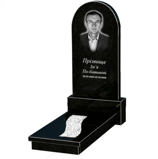 - Гранитное надгробие на могилу с вырезанной полосой одинарное из черного гранита Коростышев с полукруглой стелой к23-kor-npf-120-60-08-006.