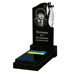 - Гранитный камень на могилу с вырезанным флагом одинарный из черного гранита Коростышев к6-kor-pf-80-40-08-142-r.