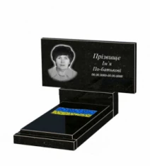 - Гранитный памятник с вырезанным флагом одинарный из черного гранита Коростышев к6-kor-npf-100-50-08-006.