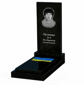 - Памятник из гранита с резным флагом одинарный из черного гранита Коростышев к6-kor-pf-100-50-08-001.