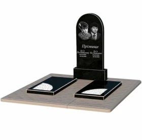 - Устройство: с постаментом , со стелой , с надгробной плитой , полное полирование сторон , неполированные фаски , с противоусадочной плитой , 2 портрета, ФИО с одной фамилией и даты