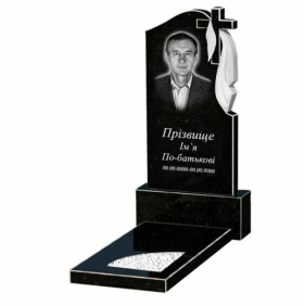 - Гранитный памятник с вырезанным уголком одинарный из черного гранита Коростышев к9-kor-npf-80-40-05-142-r.