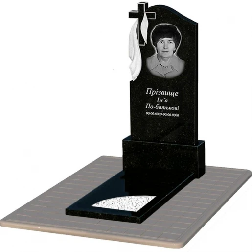 Памятник из гранита с вырезанным уголком одинарный из черного гранита Коростышев к9-kor-pf-120-60-08-142-pbd3