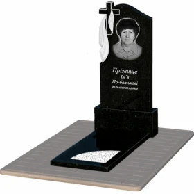 - Памятник из гранита с вырезанным уголком одинарный из черного гранита Коростышев к9-kor-pf-120-60-08-142-pbd3.