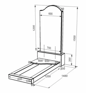 - Габариты: В/Ш/Д 1500 х 700 х 1480 мм.