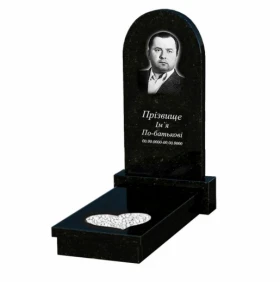 Гранит надгробие среднего размера одинарное из черного гранита Коростышев с сердцем резная работа к11-kor-pf-100-50-08-006