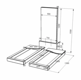 - Габариты: В/Ш/Д 1500 х 700 х 1560 мм.