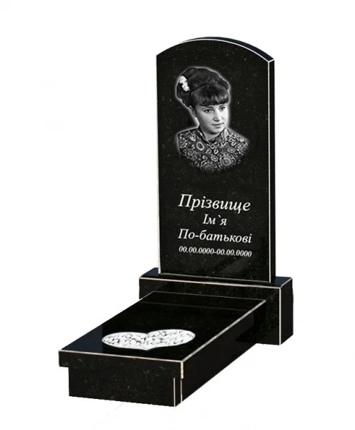 - Гранитный памятник стела 80x40 см одинарный из черного гранита Коростышев с сердцем резная работа к11-kor-npf-80-40-05-009.