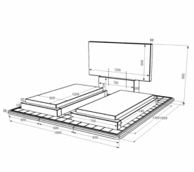 - Габариты: В/Ш/Д 900(50) х 1200(1800) х 1500(1950) мм.