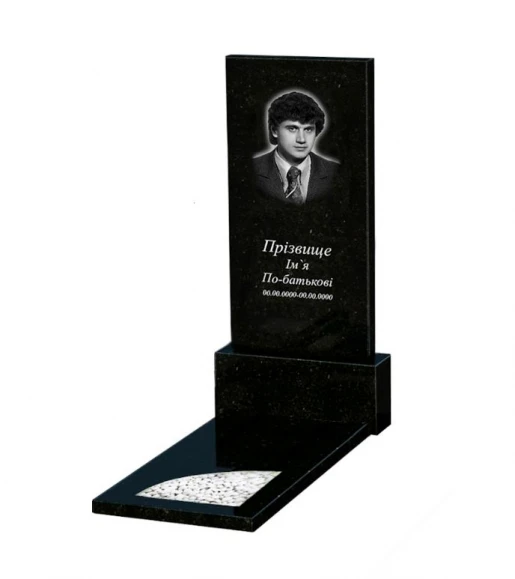 Гранитный памятник для сына одинарный из черного гранита Коростышев с вырезанным уголком к9-kor-pf-120-60-08-001