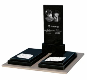 - Устройство: с постаментом , со стелой , с гробницей , полное полирование сторон , полированные фаски , с противоусадочной плитой , 2 портрета, ФИО с одной фамилией и даты