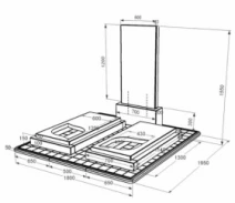 - Габариты: В/Ш/Д 1500(50) х 700(1800) х 1500(1950) мм.