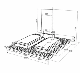 - Устройство: с постаментом , со стелой , с гробницей , полное полирование сторон , неполированные фаски , с противоусадочной плитой , 2 портрета, ФИО с одной фамилией и даты