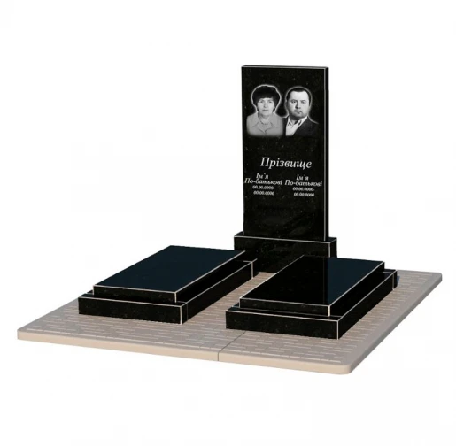 - Гранитный памятник на могилу высотой 120 см двойной из черного гранита Коростышев без резных работ к23-kor-npf-100-50-08-001-pbd2.