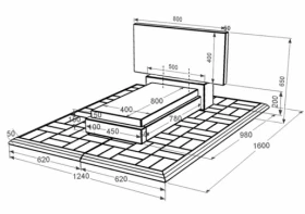 - Габариты: В/Ш/Д 600(50) х 800(1240) х 980(1600) мм.