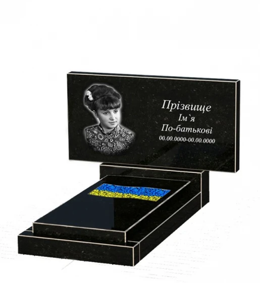 - Гранитная плита на могилу высотой 70 см одинарная из черного гранита Коростышев с вырезанным флагом к6-kor-npf-50-100-05-001.